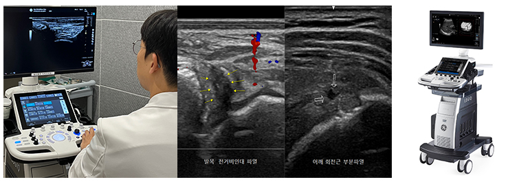 이를 통해 회전근개 파열, 오십견, 테니스 엘보, 아킬레스건염, 발목 인대 파열, 족저근막염 등 다양한 병변을 정확하게 진단할 수 있습니다.